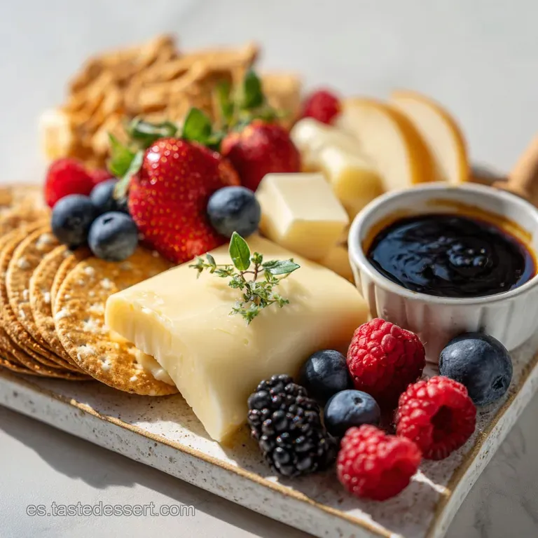 - Reducir a la mitad: Elige solo dos quesos (uno duro y uno blando). Reduce las frutas a una sola variedad y usa un plato llano bonito en lugar de una tabla grande.