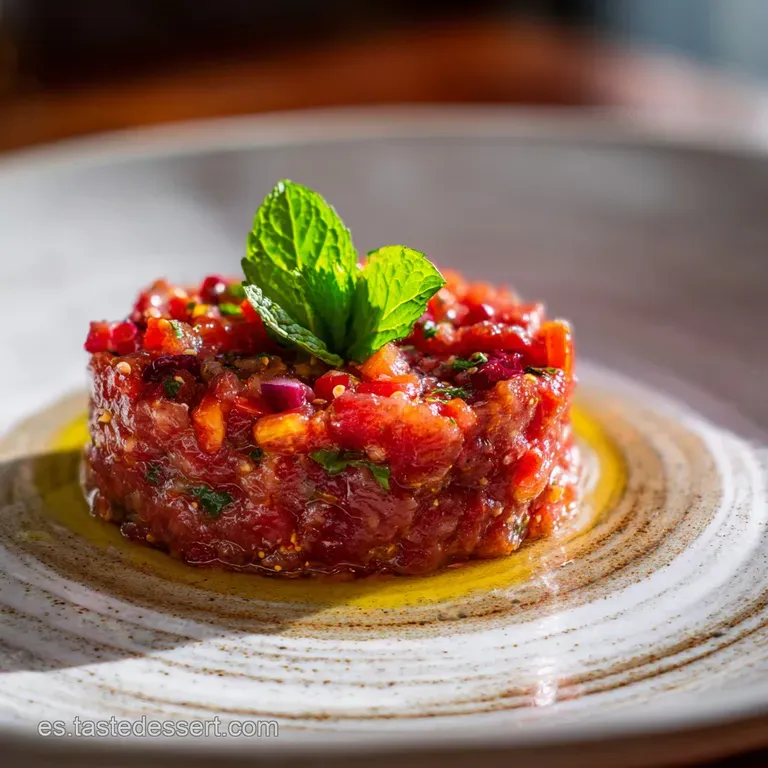 Si te gusta explorar otras texturas crudas similares, podrías probar más adelante con mi Tartar de Atun receta, que sigue principios de frescura muy parecidos pero con un perfil marino.